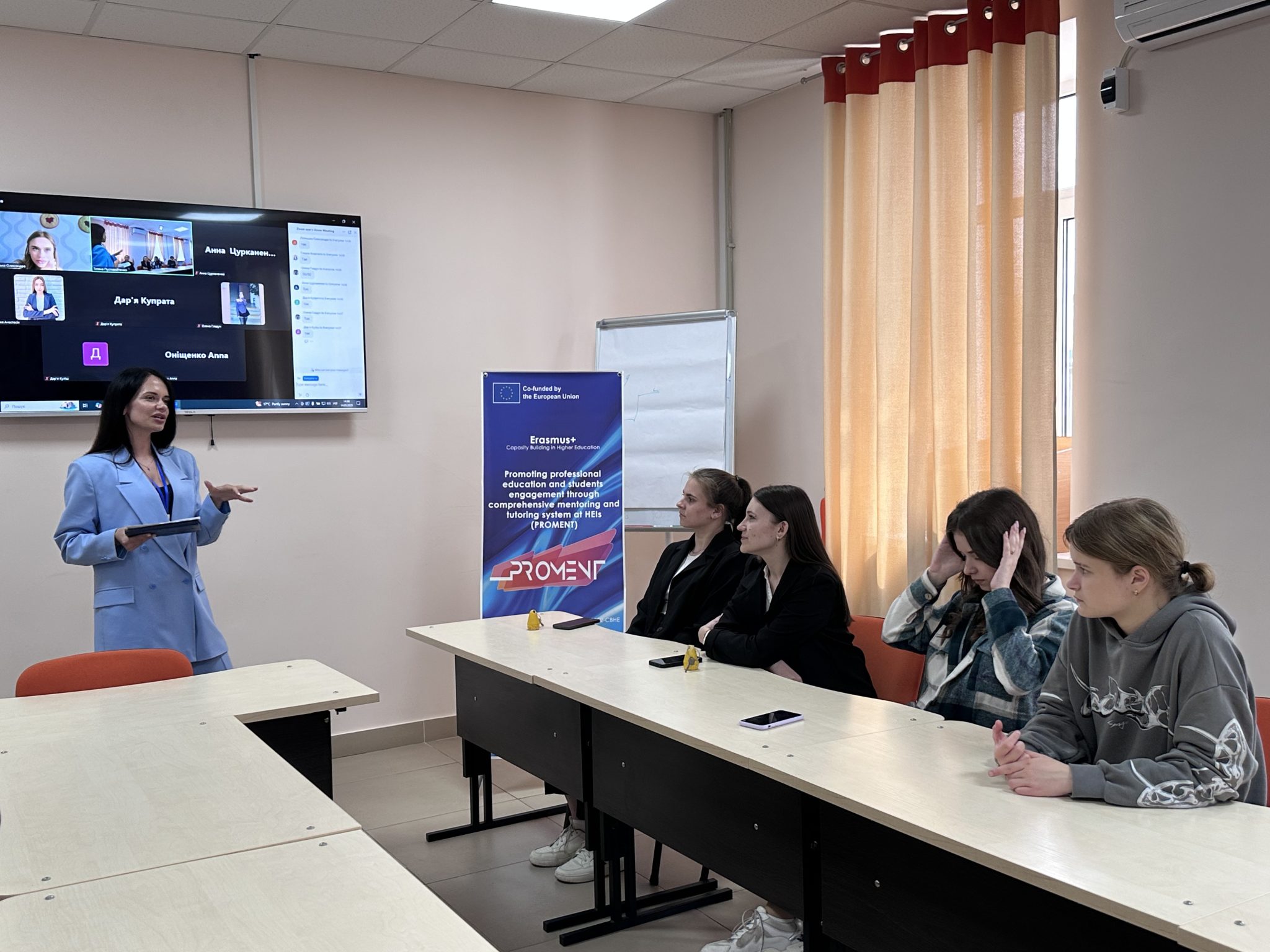 On May 14, 2025, within the framework of the implementation of the EU Erasmus+ PROMENT project “Promoting professional education and active participation of students through the establishment of a comprehensive system of mentoring and tutoring in higher education institutions” under the scheme “Mentoring for IDP students” in a mixed format, the fifth event “Training on the topic: Leadership: from personal to organizational” was held.